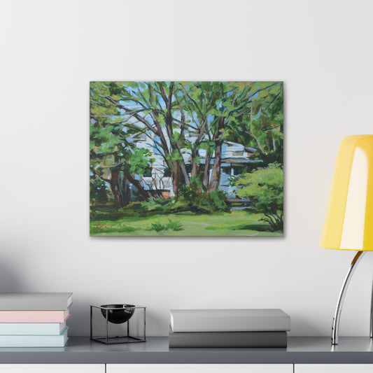 White House Amid Green - Canvas Print, Wall Art, Oil Painting, American Landscape