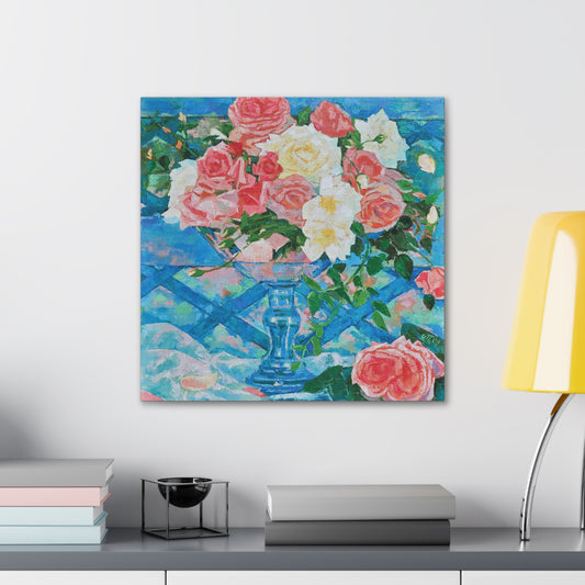 Canvas Tote Bag - Bouquet of Roses in Glass Vase