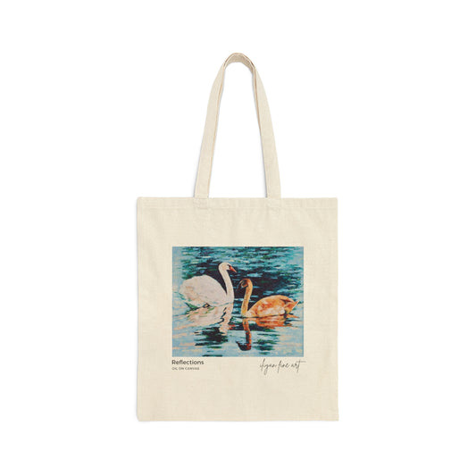 Canvas Tote Bag - Swans on Lake with Reflections