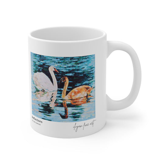 Ceramic Mug 11oz - Swans on Lake with Reflections