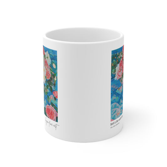 Ceramic Mug 11oz - Bouquet of Roses in Glass Vase