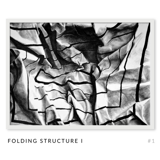 Folding Structure Art Series - Set of 3 Black and White Pastel Drawings