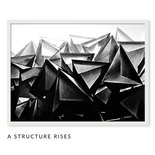 The Abridged Structures Art Series - Set of 5 Black and White Pastel Drawings