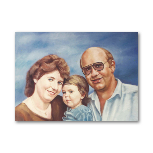 Pastel is used in creating masterfully drawn color portraits with no drying time required. Pastels allow for a lifelike level of detail, and give the piece a velvety, matte quality. Pastel artwork is more prone to fading than oil, so it must be framed and kept behind glass to better preserve the color over time.