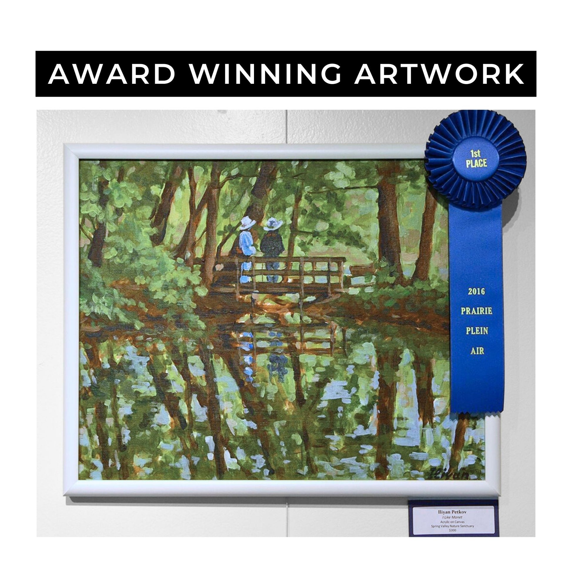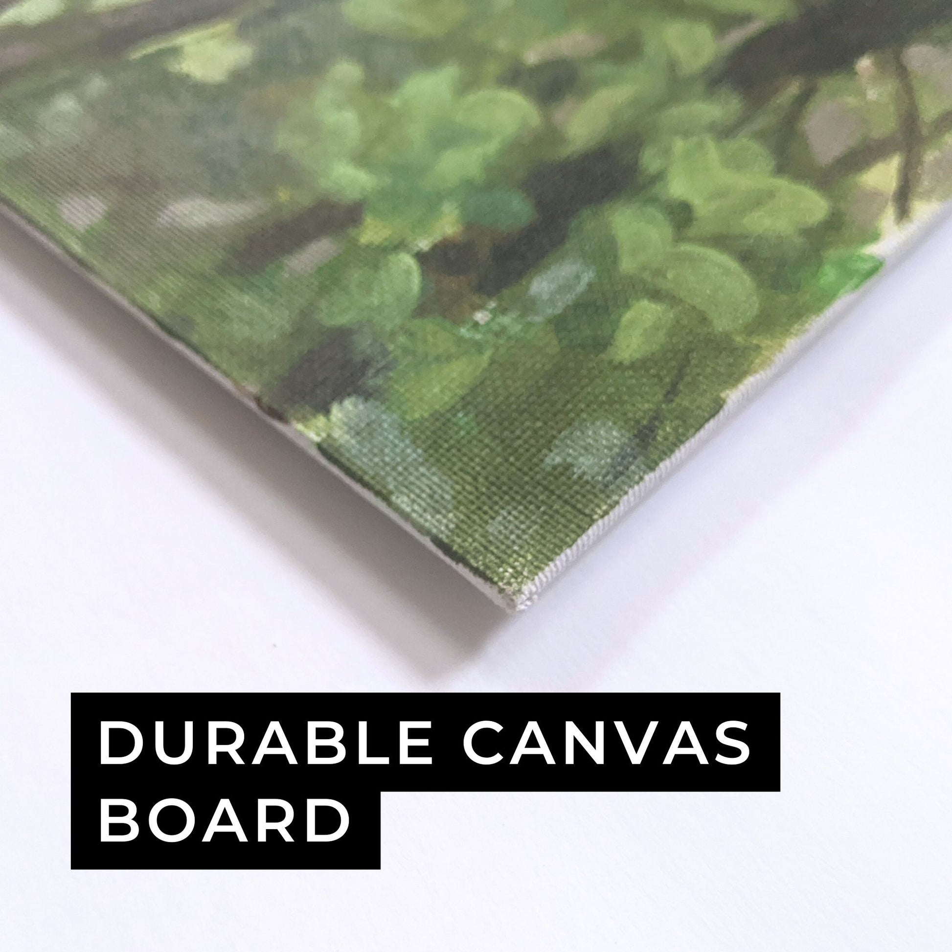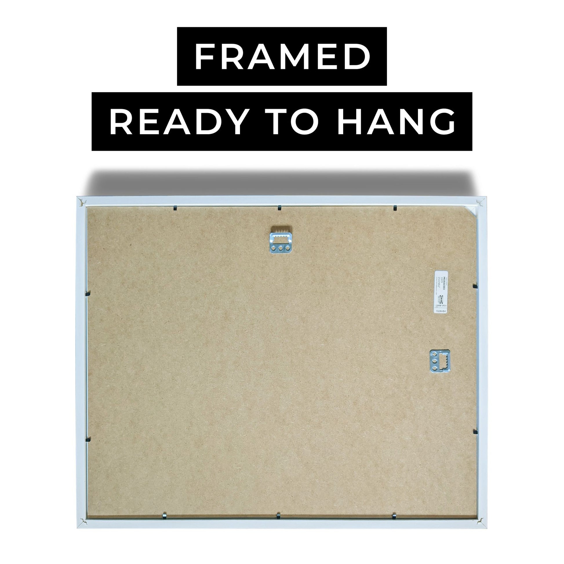 This original artwork comes as a canvas board, fully framed with a white wooden frame, and is ready to hang.