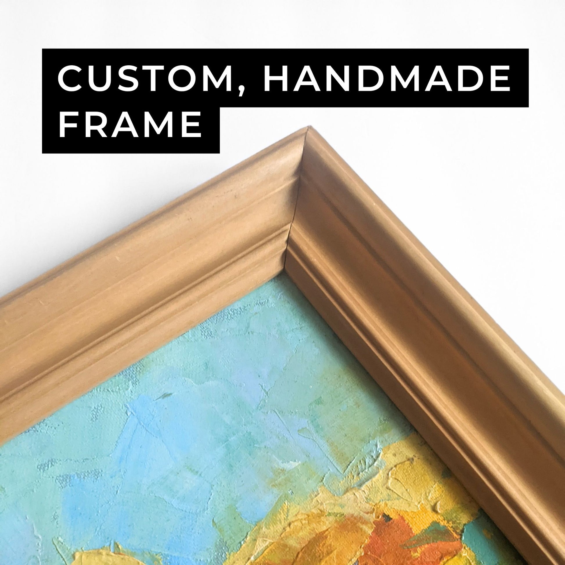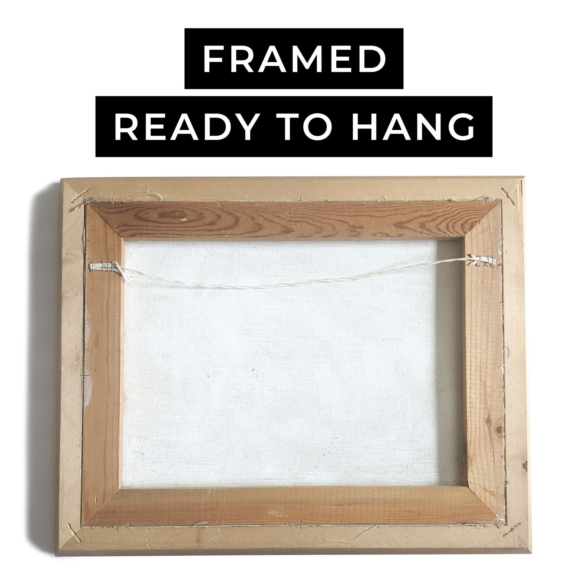 This original artwork comes as a stretched canvas, fully framed with a light wooden frame, and is ready to hang. The frame custom-designed and handmade by the artist specifically for this painting.